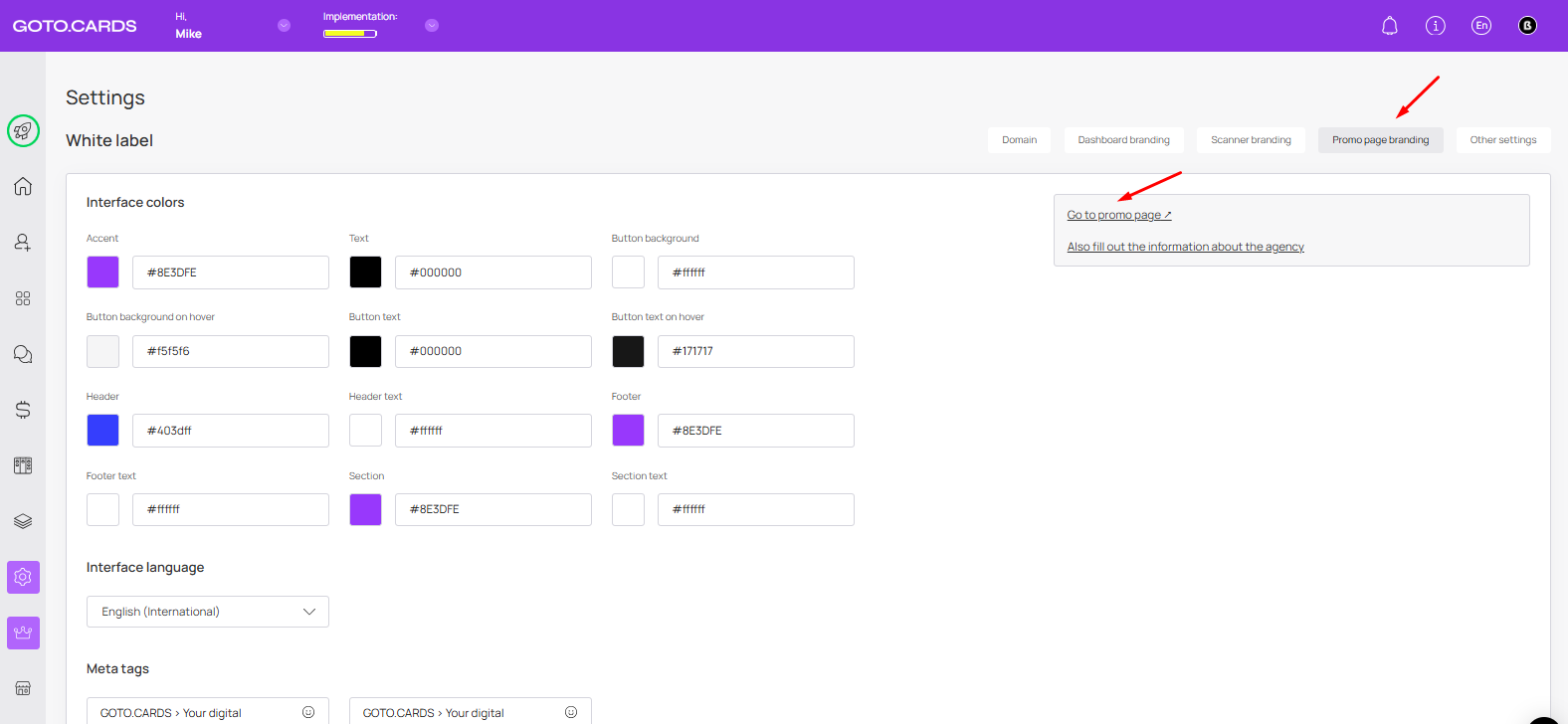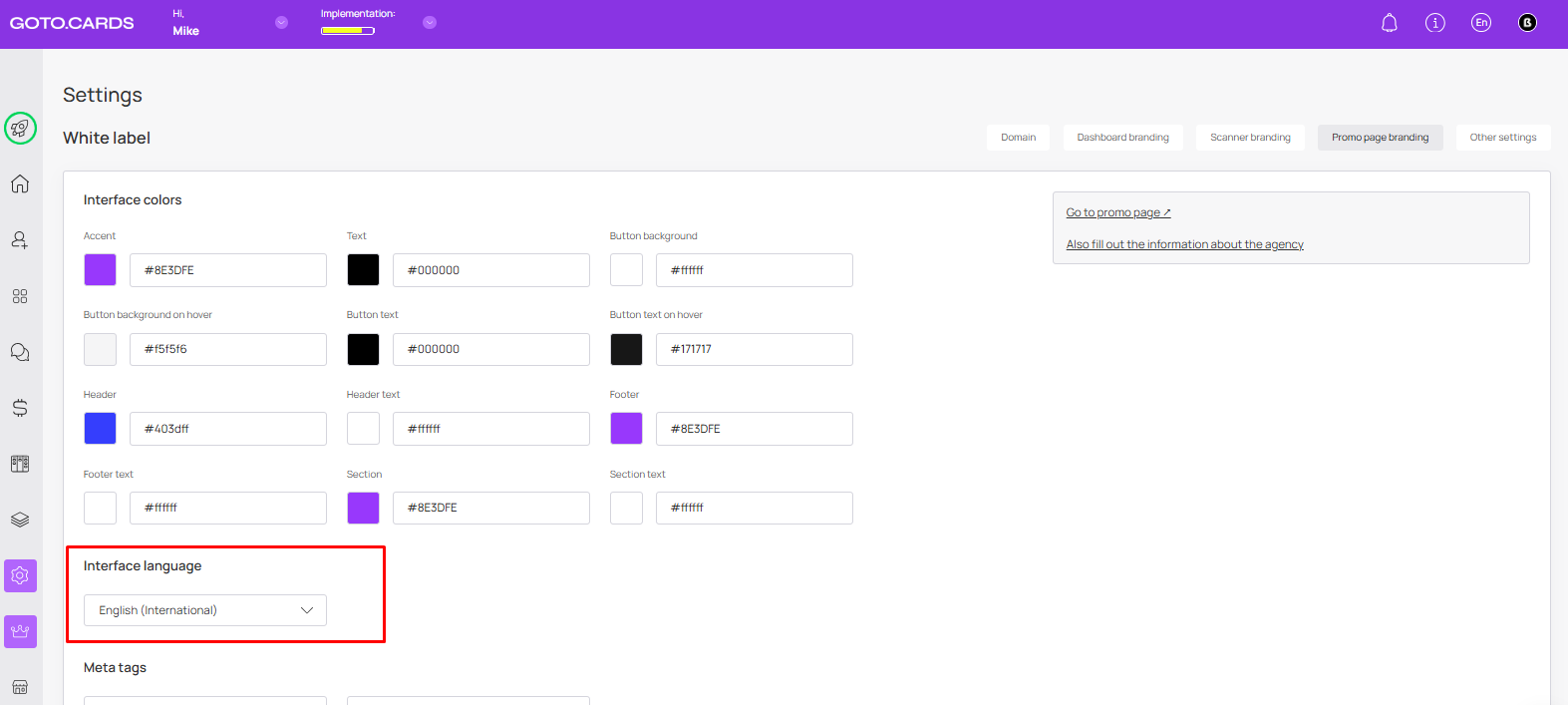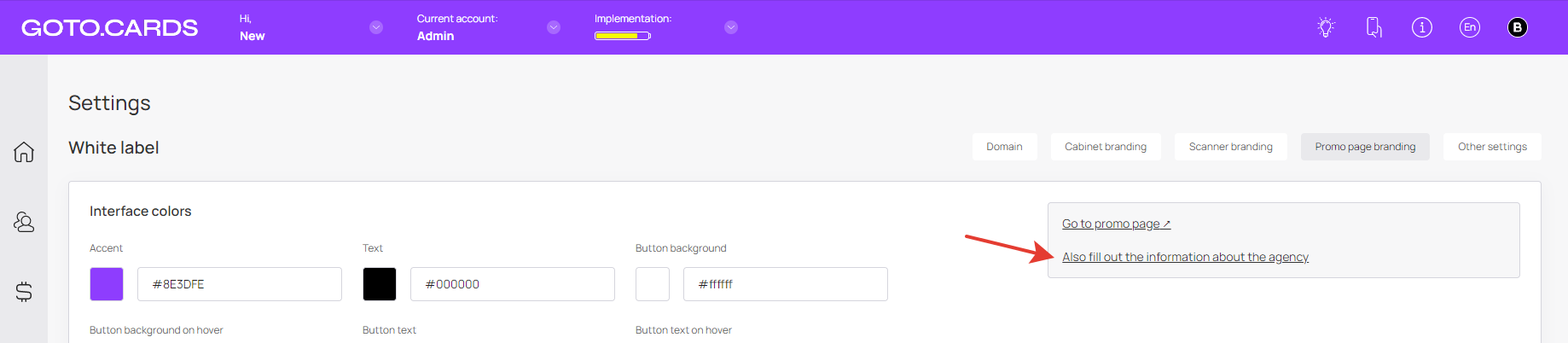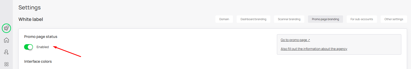 **Promo Page Status** — if you don’t want to use the agency promo page, you can disable it.