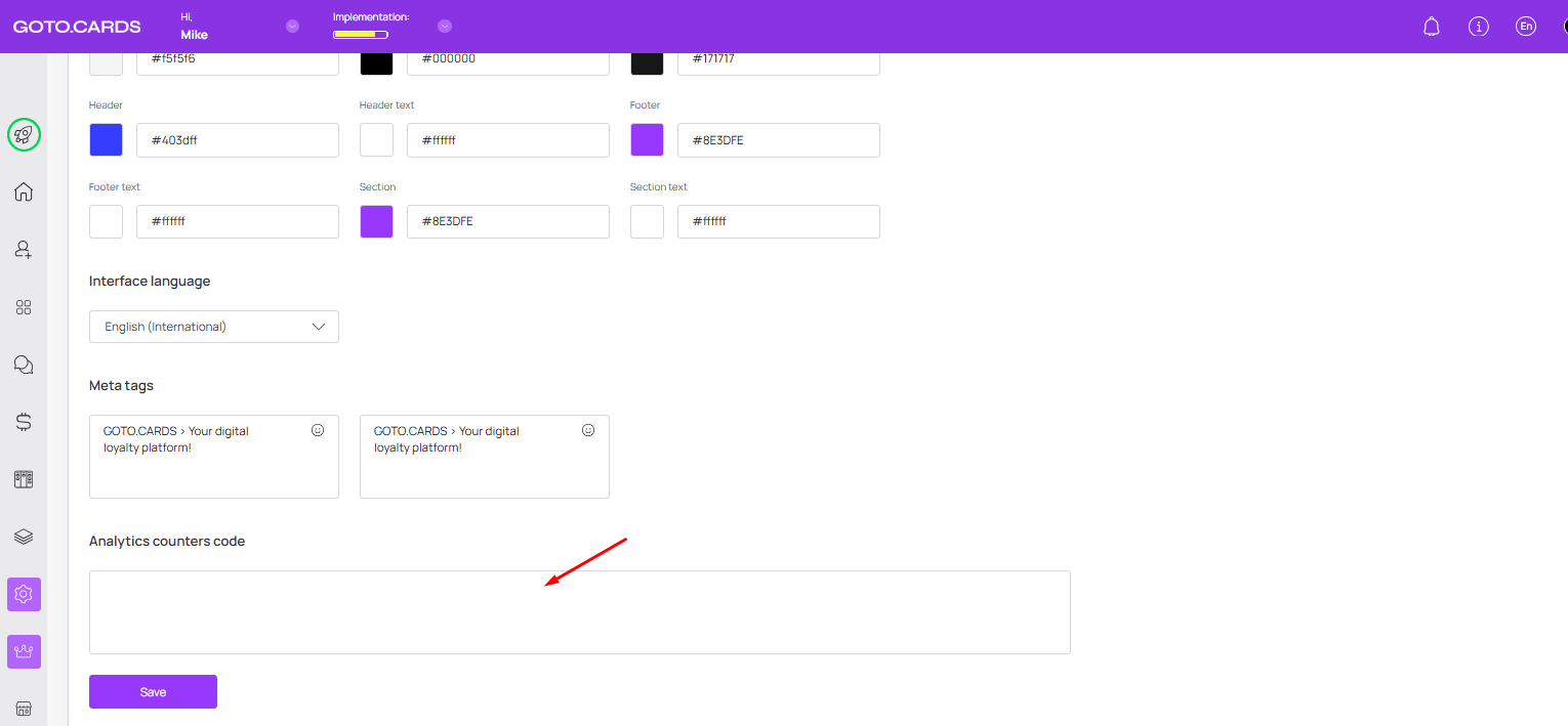 **Analytics Counters code** - Analytics Counters code - Paste tracking codes (e.g., Google Analytics). Leave blank if no tracking is needed.