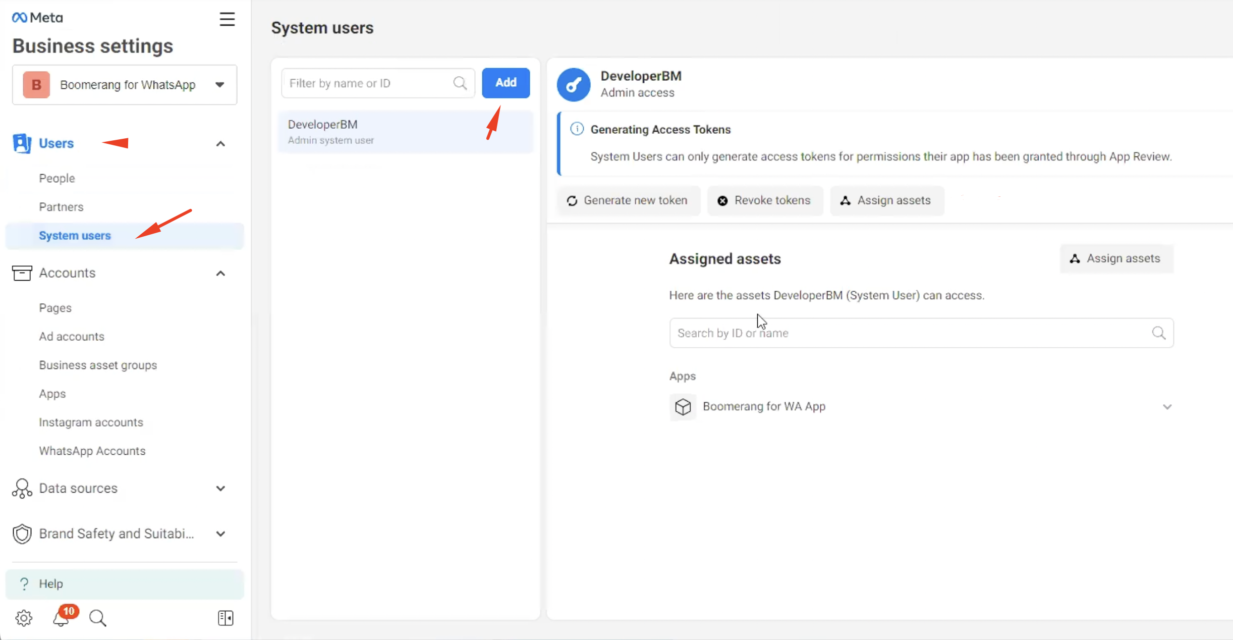 Phone number ID, WhatsApp Business account ID are also listed on this page. These data are needed to connect WhatsApp Bot in Boomerang account.&#x20;